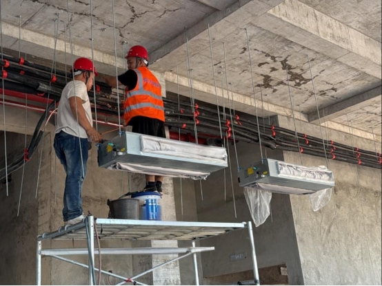 省旅發(fā)大會召開在即,重點項目國際陸港東盟集風情街建設正在緊張推進,項目的空調及熱水設施設備安裝任務落在懷化產投資產運營置業(yè)有限公司身上,必須在最短時間內完成5棟場館、總面積1.2萬平方米的安裝工作,確保大會如期順利舉行。