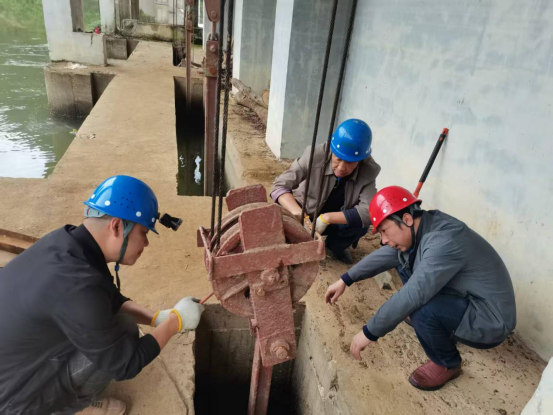 (圖二:運(yùn)行班組人員對閘門進(jìn)行檢查并泄洪)