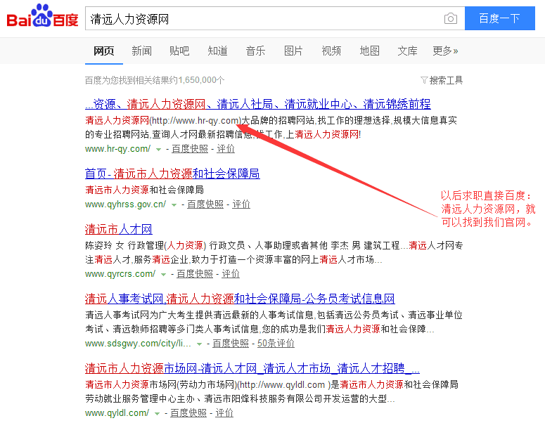 恭喜“清遠人力資源網”m.qinziju.com榮登百度搜索清遠地 區(qū)首位。清遠人力資源網是由清遠市人力資源市場指導、清遠市錦繡 前程人力資源有限公司運營的官方求職招聘平臺。從3月份正式推 廣到現(xiàn)在,本網站已經吸引了眾多企業(yè)與求職者注冊。